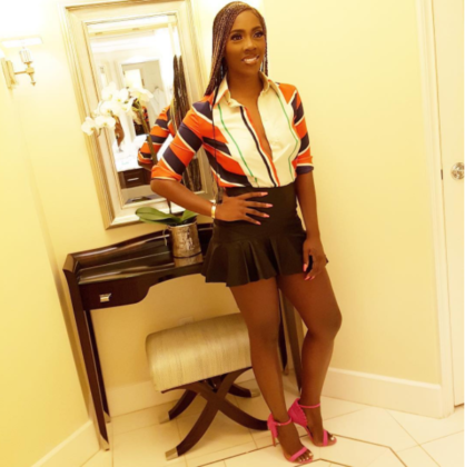 The first lady of Mavin Records Tiwa Savage just shared this really s3xy picture of herself rocking a mini skirt and an unbuttoned shirt.