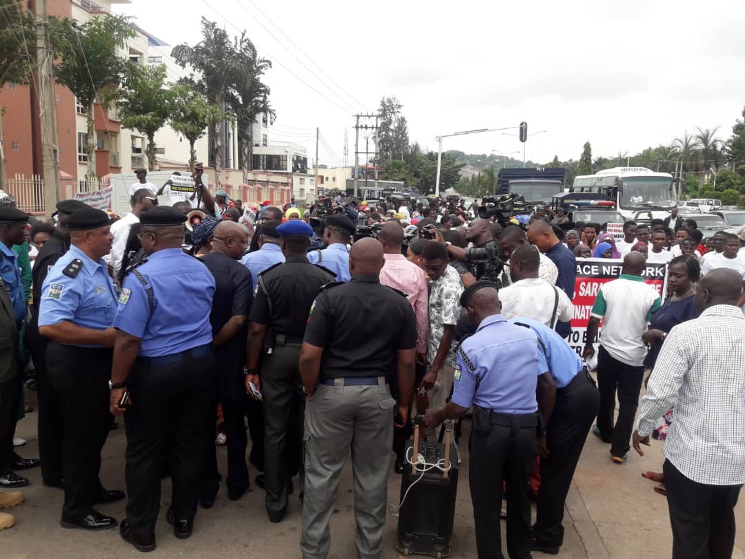 Commissioner of Police,Esa Ogbu who received the protesters on behalf of the Inspector General of Police, Ibrahim Idris urged them to assist the Nigeria Police Force and other security stakeholders with information that will help them in discovering persons or group of persons responsible for causing mayhem in the country.