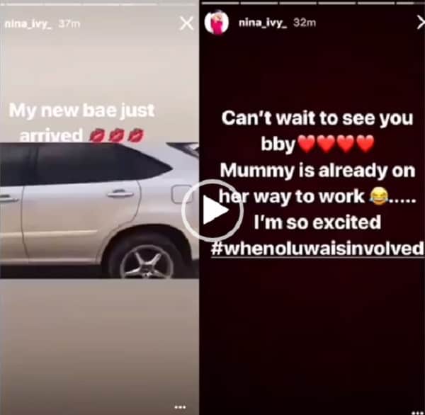 Nina shared a photo of a Lexus car and revealed that her ‘new bae’ just arrived, describing as a move made by God in the language; “oluwa is involved”.