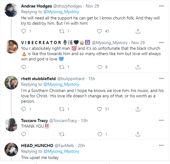 Since being a gay Black man, especially in the Black church, is deemed unacceptable, his followers showed an outpour of support via Twitter.