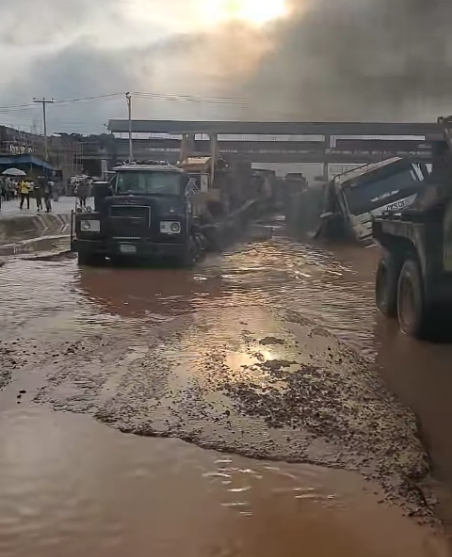 Explaining he narrated that ” on Saturday, after a heavy down pour, a trailer laden with bags of cement fell inside the flood at the bad spot of the road, destroying over a hundred bags and the trailer at the same time.”