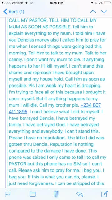 When I confronted her with my evidence she confessed to the allegations and still cannot adequately account for the money she was entrusted with. She claims she loaned her mother Mrs Eddienwachukwu Chinwe blessings Nonyelum N3M and boyfriend Akinlonu Abiola Mobolaji N10M and $13,000.Her own texts in her own words explain how she was buying bottles of expensive alcohol and living it up with my stolen funds despite my generosity and kindness towards her. She has betrayed my trust and squandered the life changing opportunity I provided her. There are millions of people who will have cherished a similar opportunity so I refuse to let this change who I am as a person. Everything I did for her was from the kindness of my heart and without expectations.