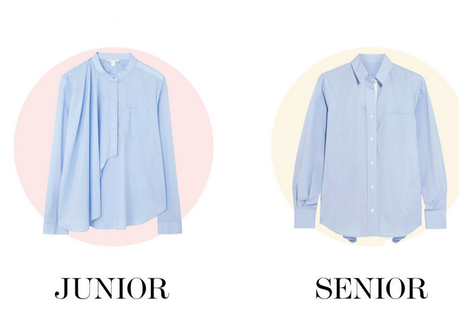 A plain blue shirt can be so account-y, but add a flappy half-cape to the front, a built-in belt, or a panel in a contrasting fabric, and it’s suddenly *fashion.*