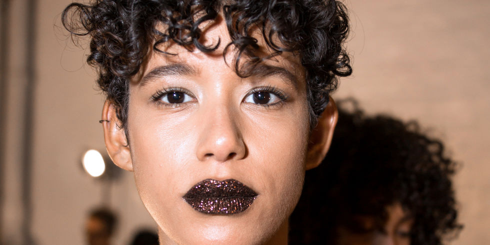 Pat McGrath’s #Lust004 continues to give the runways some serious lip service. At DKNY, every model had some variation of her signature glitter lip, with some sporting all-over sparkly pouts and others just a “crescendo of glitter” speckled on her Blood Wine lip kit shade.