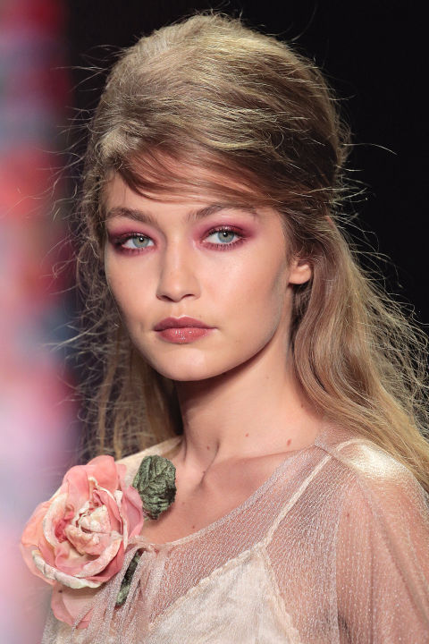If you had your doubts about draping, AKA the sculpting-with-blush trend, in terms of wearability, look no further than the look MAC lead makeup artist Emi Kanek created at Adam Selman. Inspired by the ’80s, she applied a soft pink blush to the cheeks and towards the brow bone in semi-circle fashion. Equal parts statement-making and youthful, it’s basically the new contour.