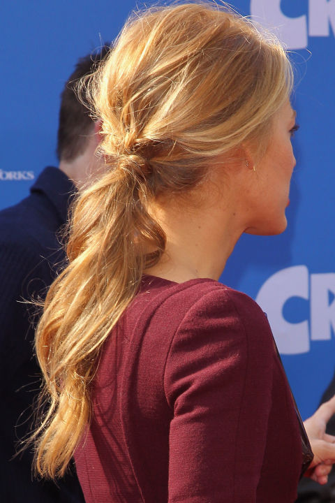 Guys hate when hair hangs in your face. Blake Lively’s pretty, polished ponytail is one way to get it out of your way—and his.