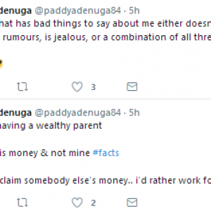 The son of Nigerian businessman Mike Adenuga, Paddy, took to social media early today to address rumors that people have been spreading about it.