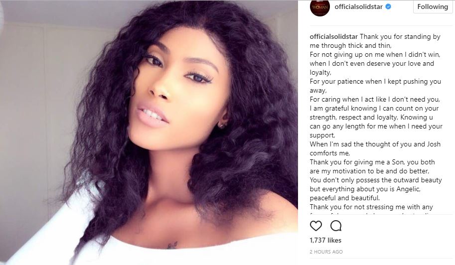 Nigerian singer, Joshua Iniyezo, better known by his stage name SolidStar, has taken to his Instagram page to share pictures of his babymama and to shower praises on her.