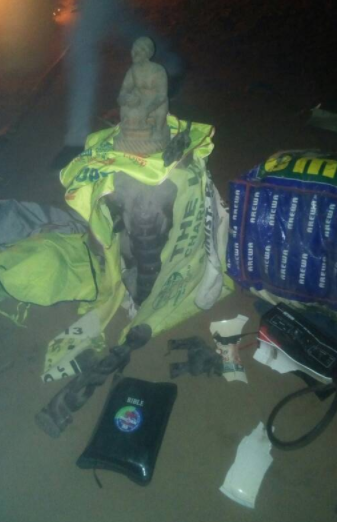 Youths of the village and neighbouring community caught him, beat him up and set his home ablaze. The also uncovered various charms in his home.