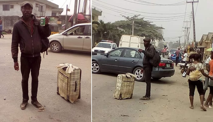 A London-based Nigerian man identified as Chuks Kamsy from Ogidi Town, Idemili North Local Government Area of Anambra State, who seems mentally unable, has been reportedly roaming the streets of Lagos with his travel box as he is unable to secure a stable aboad three weeks after arriving the country.