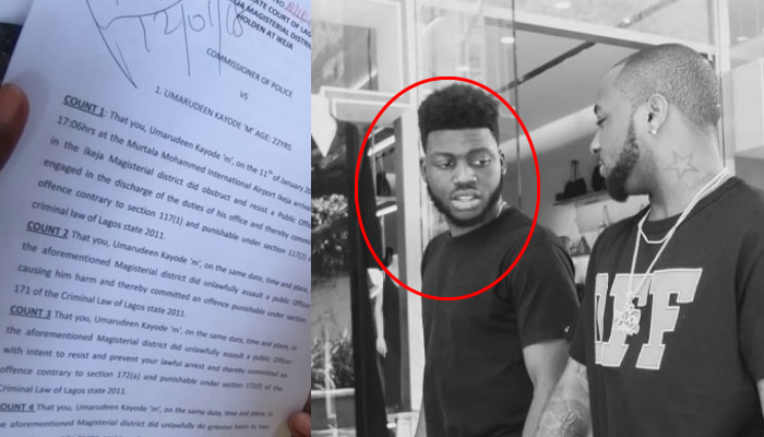 Davido’s crew member, Umarudeen Kayode arraigned in court, held in prison custody for attacking Lagos airport officials