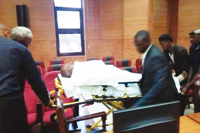 Following the threat by the court, Metuh was produced in court on a stretcher on Monday.