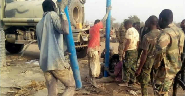 “The army has constructed a borehole at the cleared insurgents’ strong hold ‘Sabil Huda’ camp in Sambisa forest to enhance access to safe drinking water to the troops.