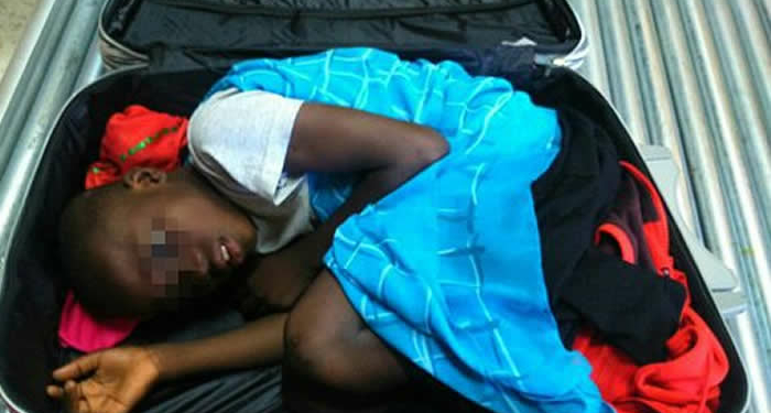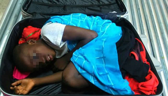 When they put the suitcase through an X-ray machine they were shocked to see the silhouette of a child curled up in foetal position.