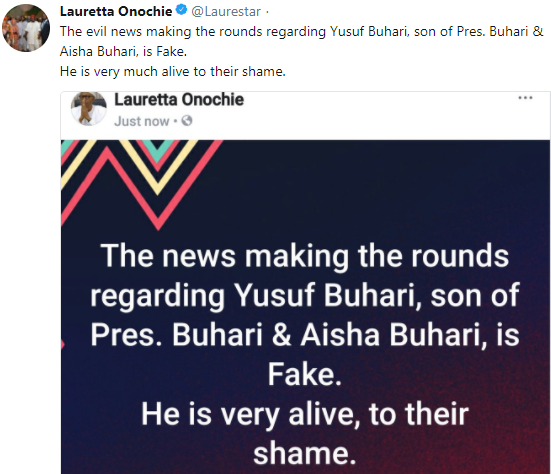 President Buhari’s Personal Assistant on Social Media, Lauretta Onochie, took to her twitter page to debunk the report.