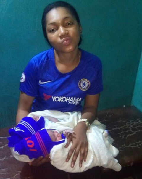 New mother James Juliet took to Facebook to reveal that her twin boys came into the world immediately Chelsea scored on Tuesday. In photos shared, she had on a Chelsea Jersey and also dressed her sons in Chelsea colors.
