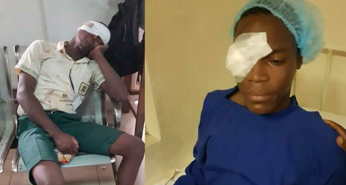 “This is Benjamin Edet, a student of Ojodu Grammar School. Benjamin was stabbed in the eyes by a fellow student on Wednesday and was operated upon yesterday. The injured eye was evacuated. The culprit has not been arrested.