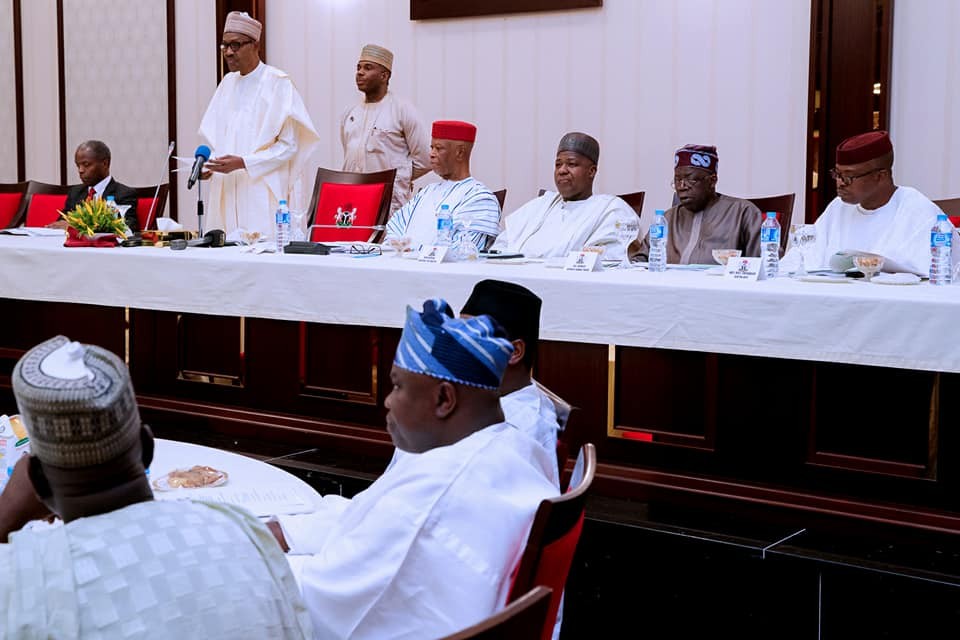Others present at the meeting were APC National Chairman John Odigie Oyegun, Speaker House of Representatives Hon. Yakubu Dogara and APC Chieftain Chief Bola Ahmed Tinubu.