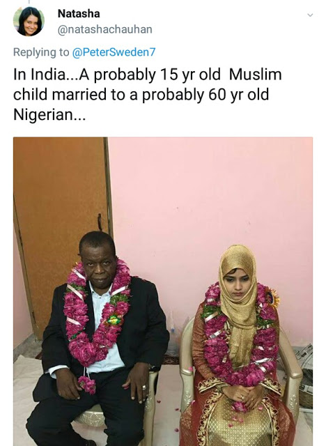 The Indian girl that was married off to a old Nigerian man is said to be around 15 years old while the Nigerian man looked to be in his 60s.