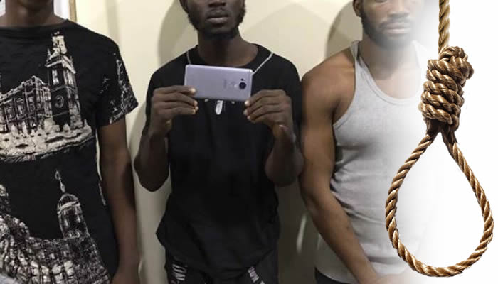 Justice Olatokunbo Majekodumi sentenced Abdulrasak Moshood, Sakiru Osunmuyiwa and Azeez Olonade to death for armed robbery, conspiracy and rape.