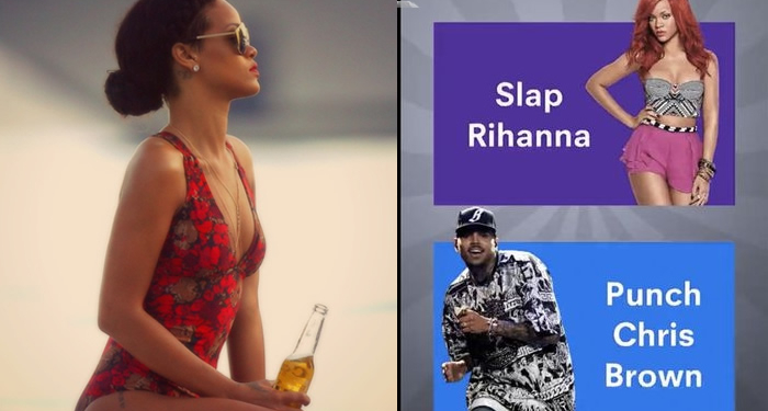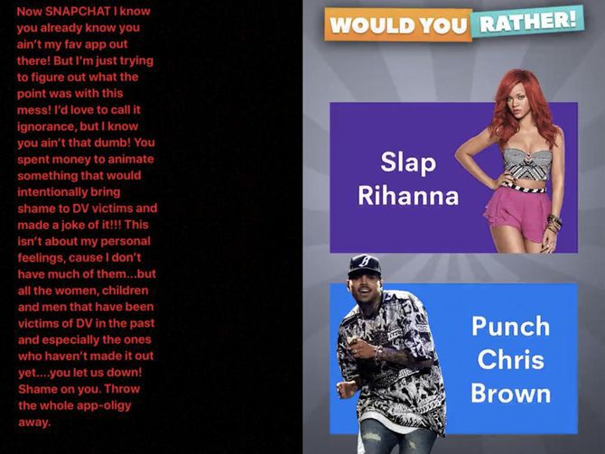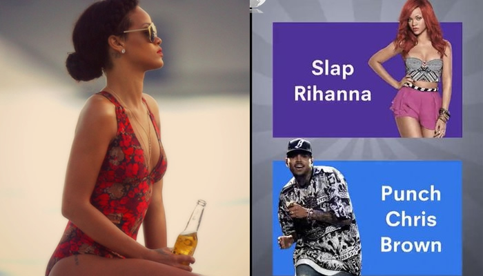 The advert asked Snapchat users if they would want to slap the singer or punch her former beau, Chris Brown.