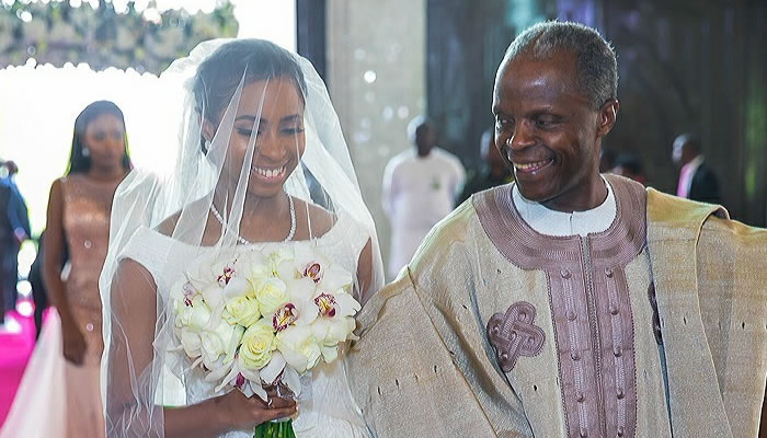Vice President Yemi Osinbajo was all smiles as he walked his daughter, Oludamilola down the aisle at her wedding which held at the National Ecumenical center, Abuja earlier yesterday, 17/03/2018.