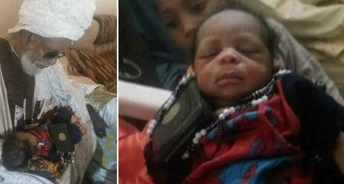 According to Hausa news platform, Rariya, the mother of the baby named Muhammad Auwal, visited one Sheikh Dahiru Usman last Friday March 23rd where she swore that her son was born with the Quaran and prayer beads.