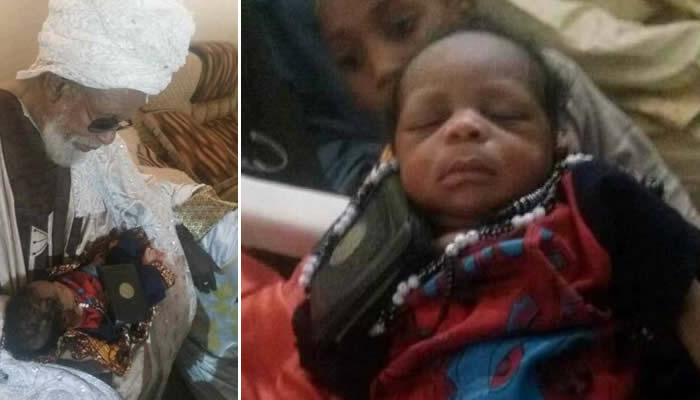 According to Hausa news platform, Rariya, the mother of the baby named Muhammad Auwal, visited one Sheikh Dahiru Usman last Friday March 23rd where she swore that her son was born with the Quaran and prayer beads.