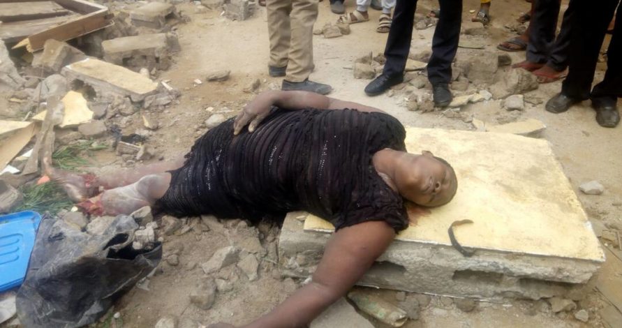 Photo: Partly demolished building collapses, kills hawker in Abia
