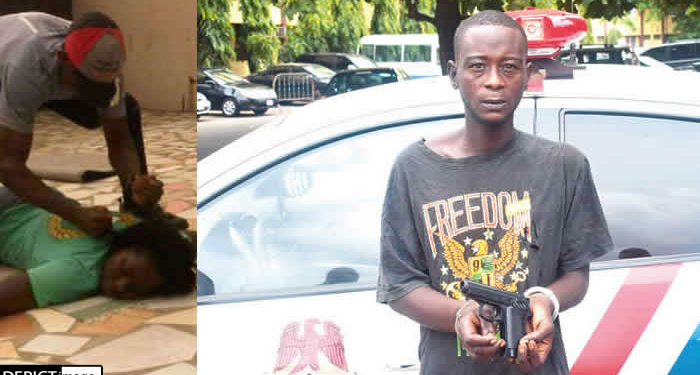 “The officers sighted him beating up his girlfriend by the roadside. They stopped to mediate in the dispute when a toy gun fell off his body.