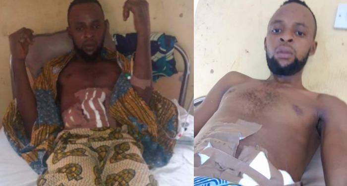 He was later referred to the Federal Medical Center FMC in Umuahia, Abia state, for better medical attention and further surgery. At the moment, Remedy has two bags sticking out of him, one for blood and the other for urine.