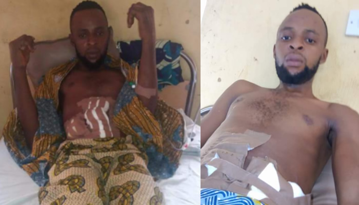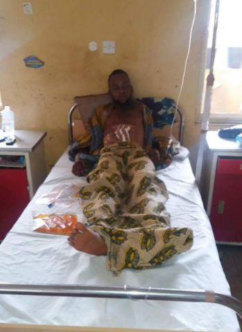 He was later referred to the Federal Medical Center FMC in Umuahia, Abia state, for better medical attention and further surgery. At the moment, Remedy has two bags sticking out of him, one for blood and the other for urine.