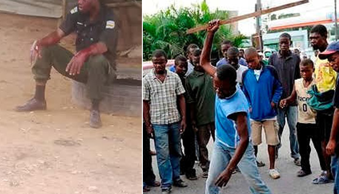 The police officer, who attempted to flee, was reportedly caught around Adedoyin Street, in the Kosofe area, where a mob beat him to a pulp.