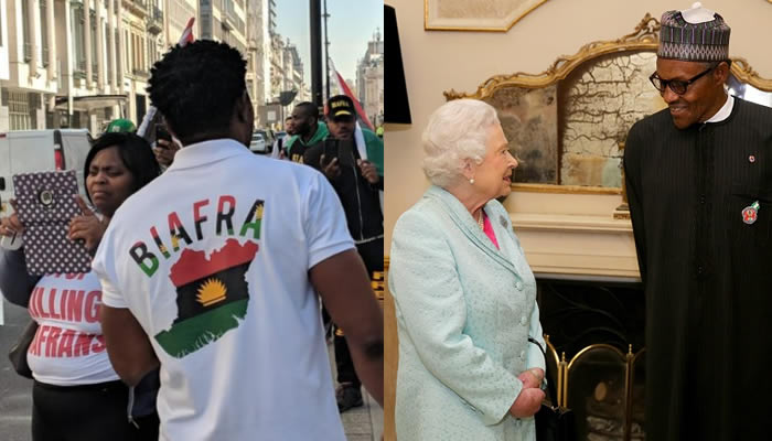 The Biafran protesters were seen carrying placards with different inscriptions, demanding the whereabouts of Nnamdi Kanu, the missing leader of the Indigenous people of Biafra as well as calling for a referendum.