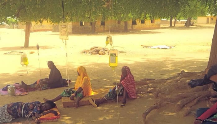 ”The PHC at Kaffe Gada LGA,Sokoto state is being upgraded. Take a look at patients receiving treatments under trees. What a situation in Nigeria.