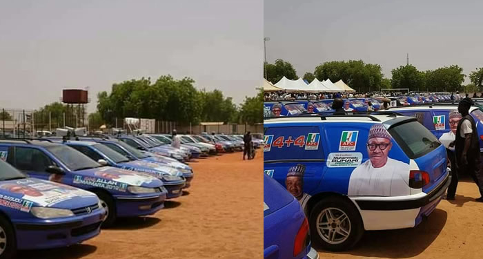 The vehicles were donated at the inauguration of the state executive council of Buhari/Bagudu 4+4 2019 supporters’ organisation in Birnin Kebbi.