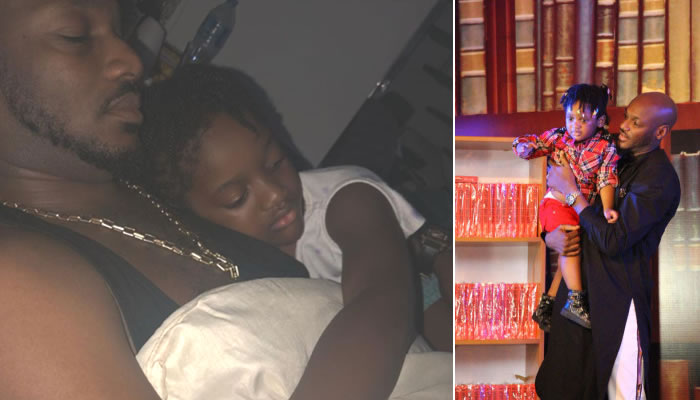 Annie Idibia shared the above beautiful photo of her daughter Olivia Idibia cuddling up to her father 2face Idibia as he slept.
