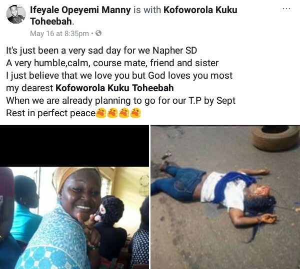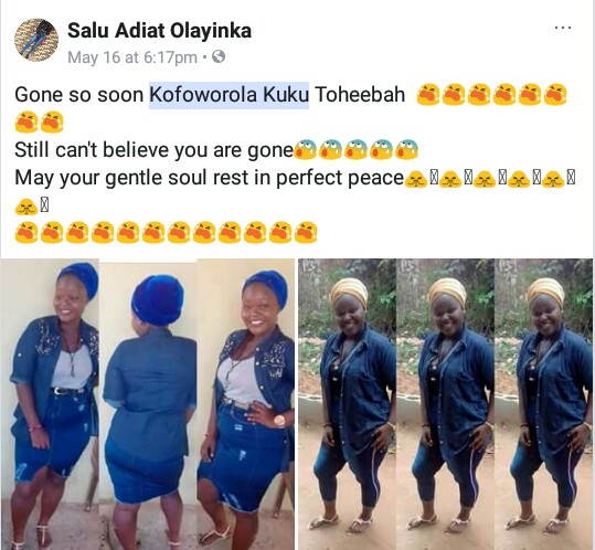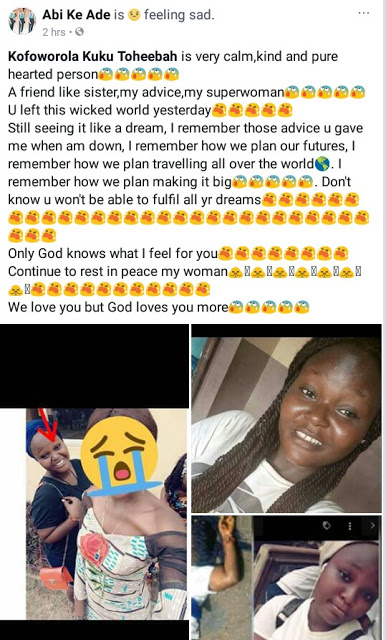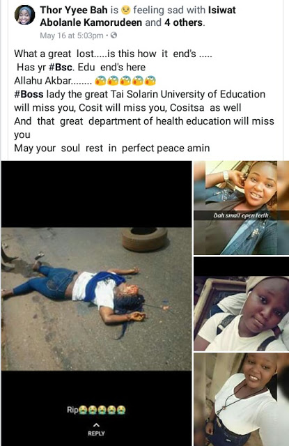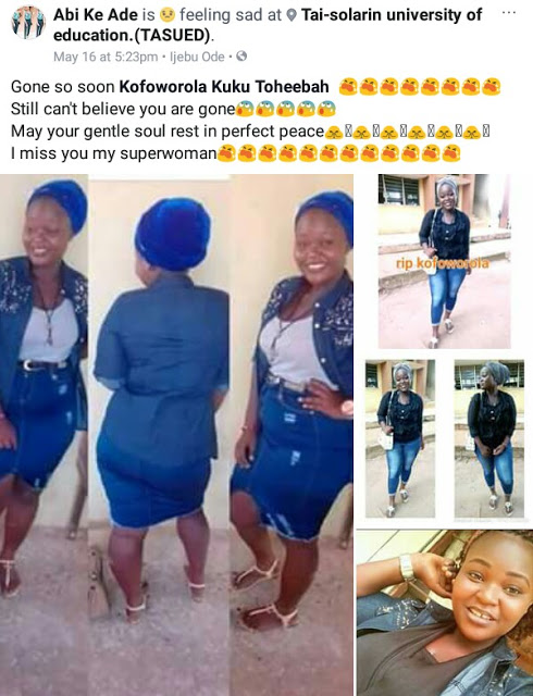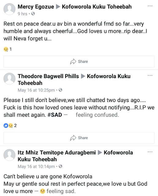 Friends and colleagues have taken to facebook to mourn the death of the late Health Education student. One Opeyemi wrote: