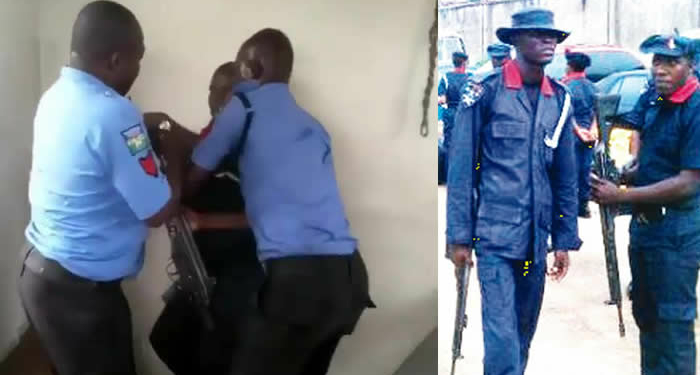This trending video shows some police officers strugging to disarm an officer of the Nigeria Security Civil Defense Corps NSCDC in Akwa Ibom yesterday May 18th.