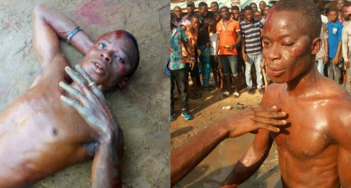 A mob pursued them, caught them and beat them mercilessly before handing them over to the police.