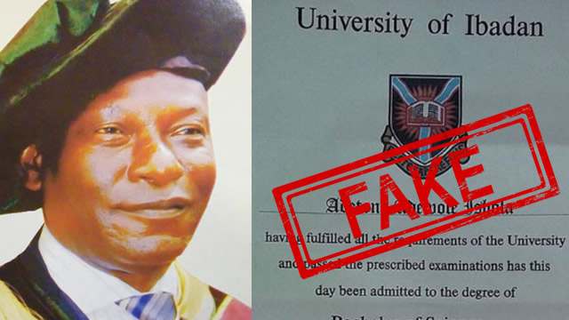 The university’s spokesperson, Oladejo, said the school’s vice-chancellor, registrar and the head of the postgraduate school had seen the document, adding that it was a fraudulent certificate.