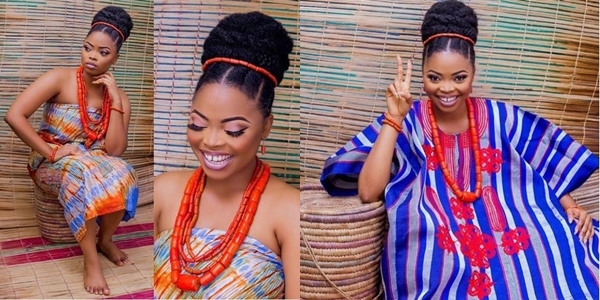 The Nollywood Actress rocks a native outfit (Aso Oke) with beads to celebrate her birthday.