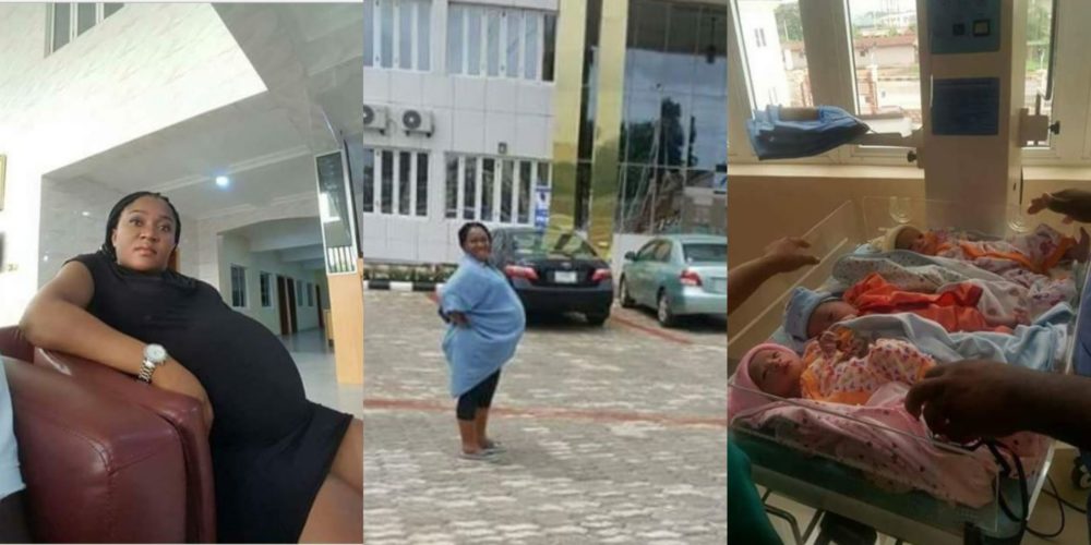 A social media user named Onyi is presently in high spirits after she successfully delivered triplets at the Life International Hospital in Awka, Anambra State.