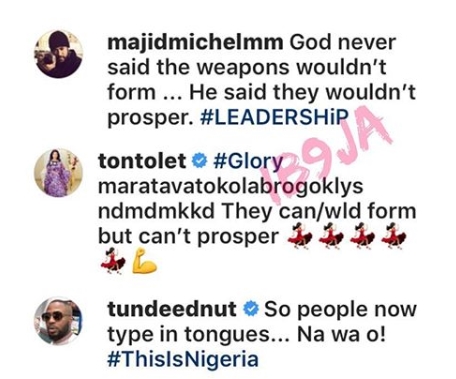Online users especially former comedian and singer, Tunde Ednut, were criticisizing her and asking questions because she was ‘typing in tongues’.