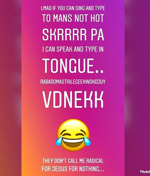 In a swift reaction to the controversy, the actress, who says she’s “radical for Jesus”, explained why it’s possible to type in tongues.