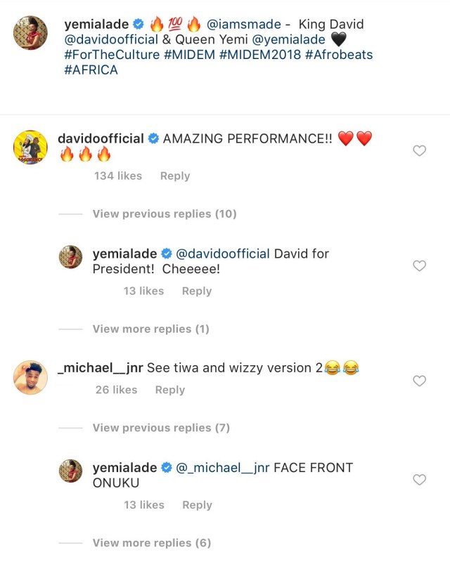 … and then a troll felt the both of them look like the a version of alleged romantic singing duo, Wizkid and Tiwa Savage. The troll took to the comment section of her page insinuating that she might just have a thing with Davido,