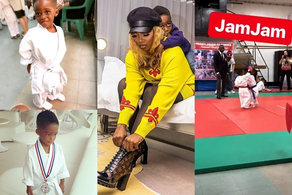 Tiwa Savage‘s son Jamil is a kungfu master (Lol).