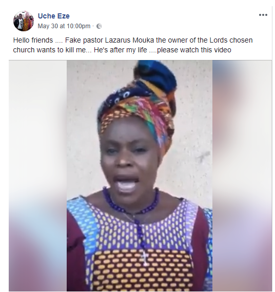 “Hello friends …. Fake pastor Lazarus Mouka the owner of the Lords chosen church wants to kill me… He’s after my life ….please watch this video.”