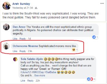 Mr. Ochereome Nnanna, Chairman Editorial Board of the Vanguard newspapers, has described the Yorubas as “sophisticated morons”.
