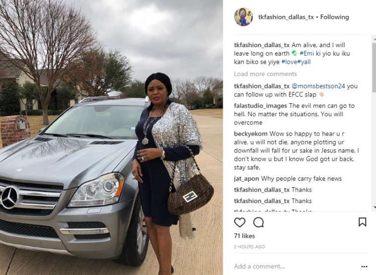 The woman has now taken to her Instagram page to debunk the rumour that she is dead.